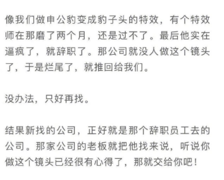 说这部电影在制作的时候,做“申公豹变豹子头”特效的特效师被逼疯换了家公司,导演只好重新找特效公司,结果……新找的公司正好是这个特效师入职的那家……