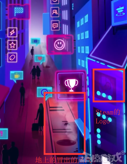 首先是来自官方的“暗示”,右下角的地缝里冒着若隐若现的“蒸汽”,而“蒸汽”的英语就是“Steam”!