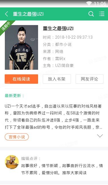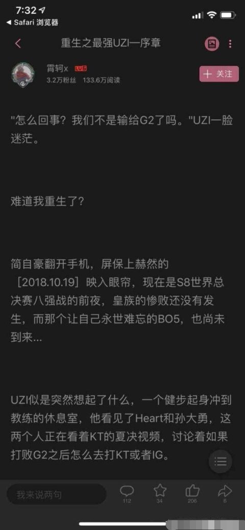 UZI作为RNG的ADC选手,想必大家并不陌生。在2018年RNG失利之后的第二天,粉丝不甘心,于是一本名为《重生之最强UZI》的小说就诞生了!