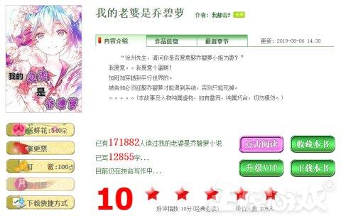 作者大概是写乔奶奶写上瘾了,当乔奶奶已经不能满足作者的脑洞了,于是作者还写了一本叫做《我的老婆是乔碧萝》的小说。小说讲述了讲述了主角穿越到平行世界之后,需要娶乔碧罗才能得到系统开挂,不然就只能挂掉的故事,这个脑洞实在是太大胆了!