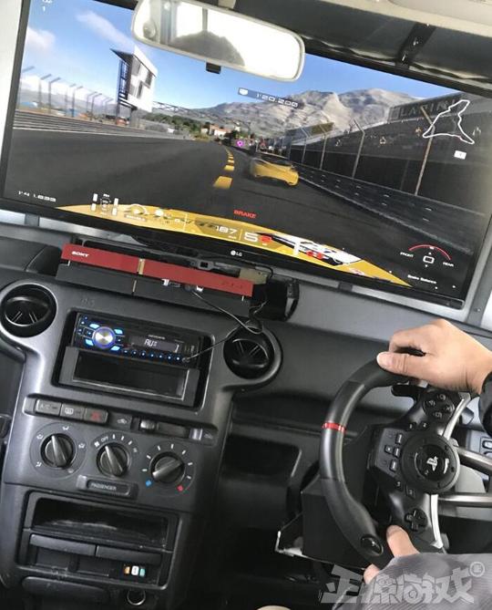 原来是网友PB_riku他老爸十分的喜欢《GTS》,但觉得在房间里太不过瘾了,于是他老爸就把自家的汽车给改装了,在车里玩赛车游戏才有气氛,才能有更好的体验。