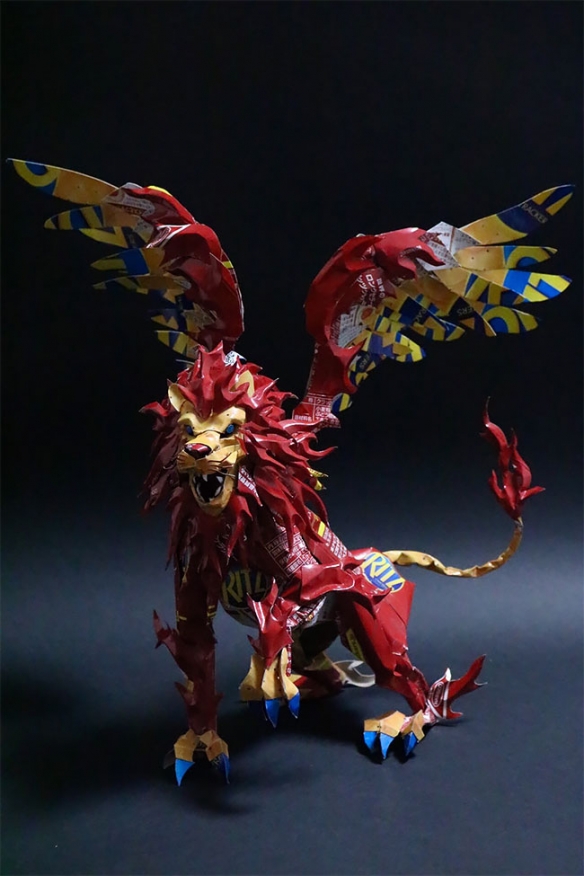 我们可以看出任何纸质包装盒到了“空箱职人”手上,他都可以打开自己的脑洞,结合纸盒上原有的配色和图案花纹,幻化成各种场景、建筑、机甲和神兽,让你啧啧称奇。