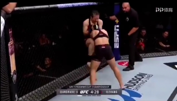 UFC格斗之夜深圳站在今(31)日深圳大运中心体育馆开战,中国女选手张伟丽挑战UFC现役女拳王、巴西选手安德拉德,争夺草量级(115磅)世界冠军金腰带。比赛开始不到一分钟,张伟丽KO巴西女拳王,成为UFC中国首位冠军!让我们一起欣赏她凌厉的进攻!