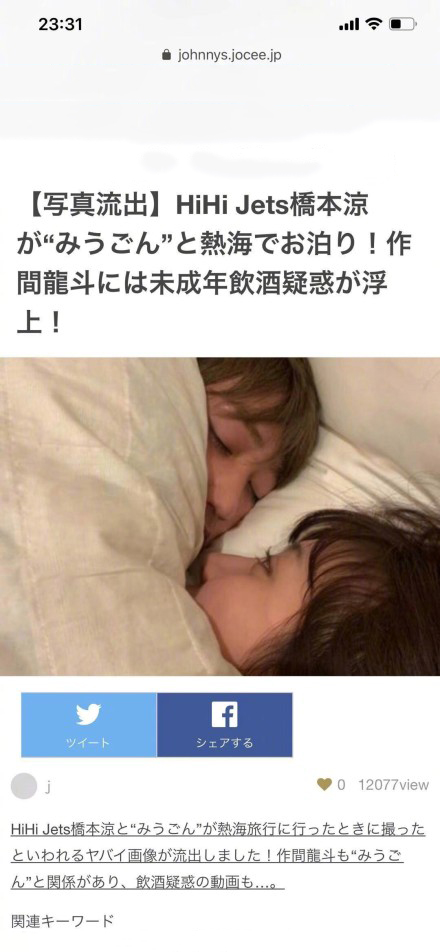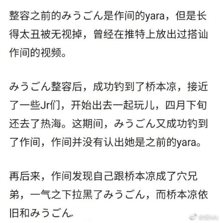 一位私生饭因为杰尼斯Jr组合HiHi Jets里喜欢的成员嫌弃她不好看,于是整容之后再次接近自担和别的队友,不仅有实锤床照,还把自担未成年饮酒也抖出来了!