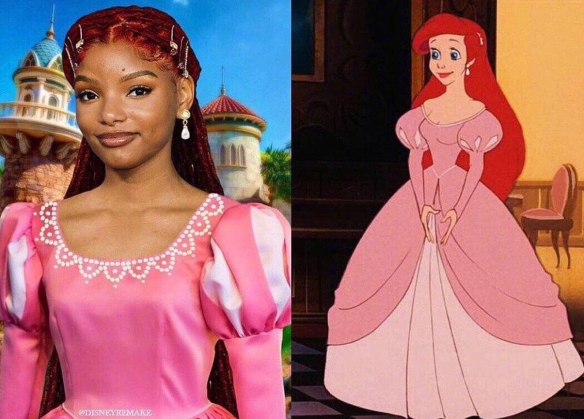 看到女主角Halle Bailey扮演的爱丽儿上岸后穿上公主服的样子,好像明白了为什么王子不爱她
