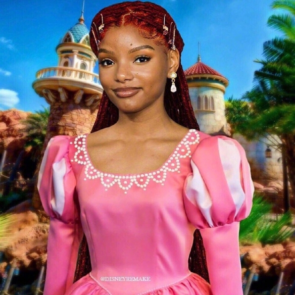 近日,国外大神Disneyremake根据《小美人鱼》动画里的造型为真人版女主角Halle Bailey创造了一张饭制定妆照。