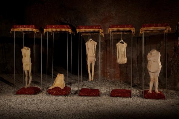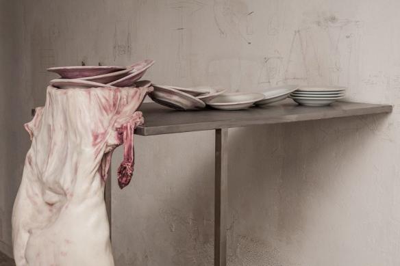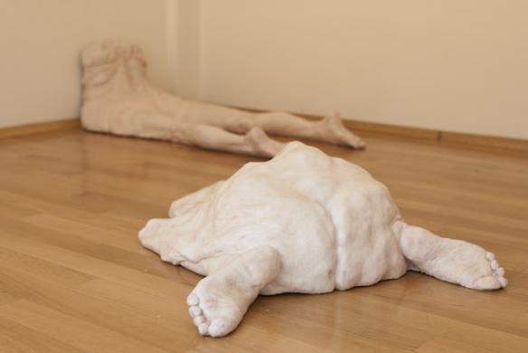 一团又一团干净的烂肉由蜡和聚酯形塑而成,Francesco Albano旨在藉由雕塑创作呈现骨骼、皮肉、地心引力之间的关係,骨头是结构、皮肤是区隔内外的边界,紧密相连且互相依存,原始比例的肢体以时尚同时扭曲的矛盾方式结合,造成观众的情绪波动,一切却显得必然。