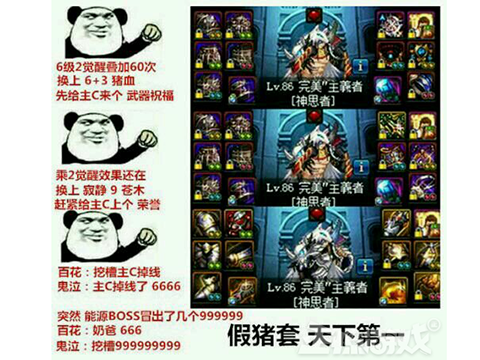 每当玩家想要吹嘘某件装备,或是参与XX装备实用性排名时,都会心照不宣地以假猪套天下第一,秒天秒地秒空气开头,热度完全盖过了远古老梗“一刀999”!至于假猪套到底有多厉害,也无人考证,反正吹就完事了!