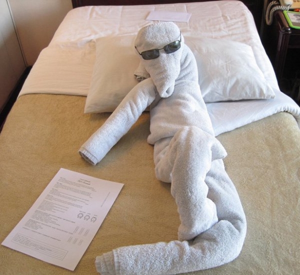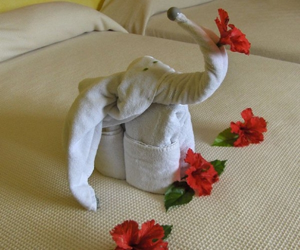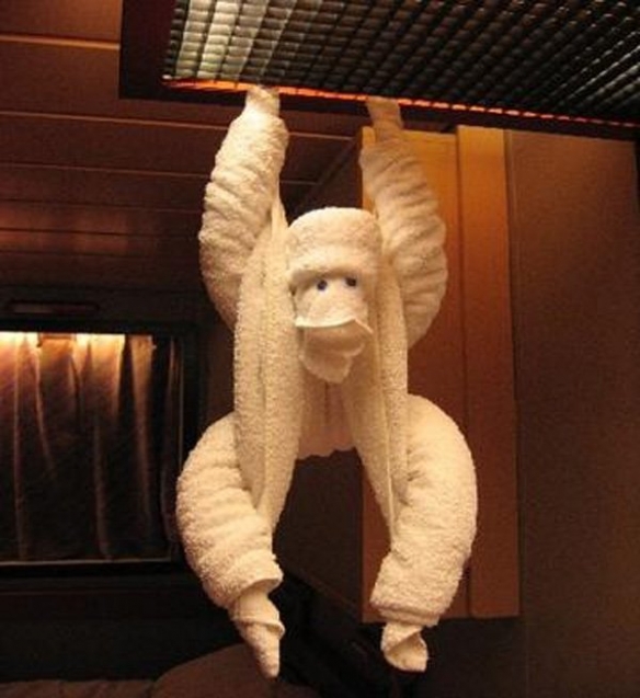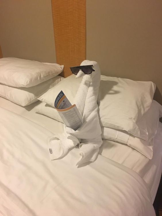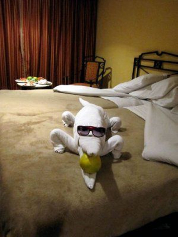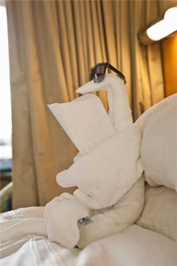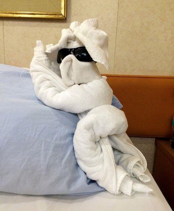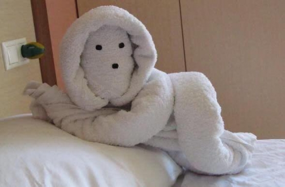 以下整理了20张网友们遇到的精美毛巾造型,一起来看看吧~