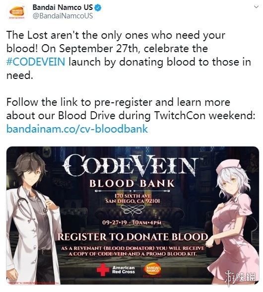 为了宣传《噬血代码》,万代还在发售前举行了一场特殊的宣传活动:来参加献血活动,就可以免费活动游戏一份。