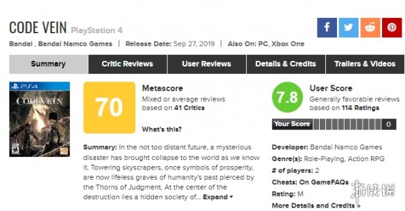 不过在已经公布的媒体评分中,《噬血代码》只取得了70分的平均分。Gamespot直接打出了60分的及格分,认为敌人和Boss战并没有什么挑战,环境设计也比较糟糕。