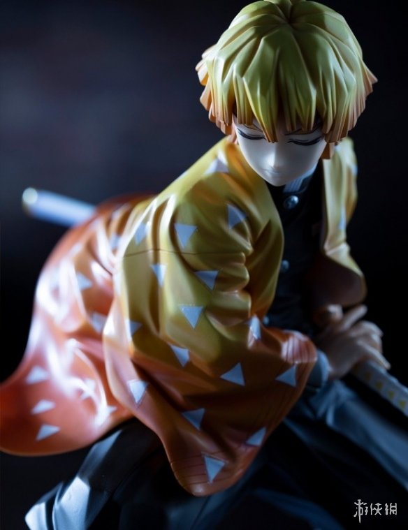 我妻善逸是《鬼灭之刃》中留着金色中短发的圆眉少年,也是本作主角炭治郎参加鬼杀队最终试验时合格的五名同期生之一。随着身体动作而打造出的服装的褶皱,用鲜艳的颜色进行涂装的羽织和头发的颜色等,该手办将善逸的魅力很好地进行了还原,再现了他在拔出“日轮刀”的瞬间的造型。
