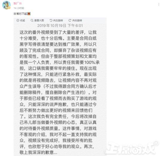 然而在短短24小时内,敖厂长就为这次的恰饭视频付出了惨重的代价,在深刻反省自己在视频文案中不当措词与虚假推广词后,面向全体观众发布长文进行道歉,并主动隐藏了自己所做的宣传视频。