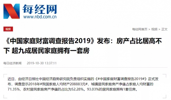 城乡居民在财产构成方面存在一定差异,从我国居民家庭财产结构来看,城镇居民家庭房产净值占家庭人均财富的71.35%,农村居民家庭房产净值的占比为52.28%。