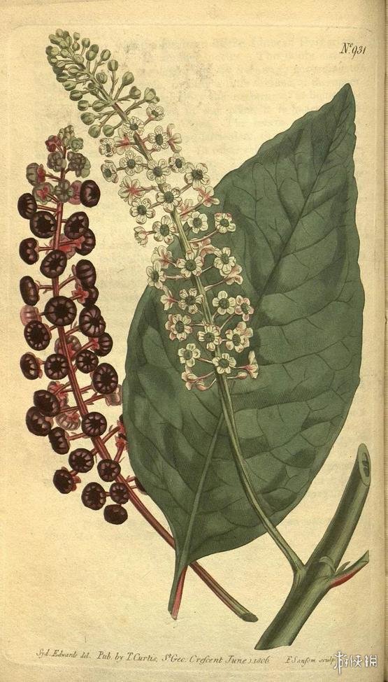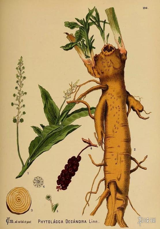 科学插图上的垂序商陆,肥大的根具有特别的形状