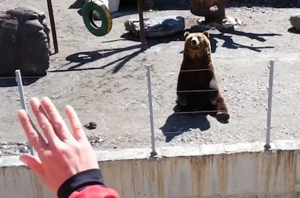 【游侠网】俄罗斯一动物园棕熊回应游客挥手