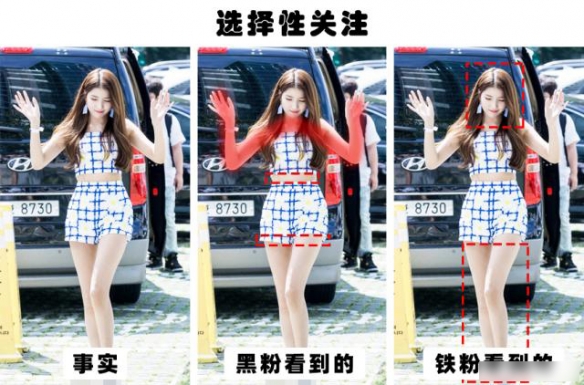 选择性感知是一个过程,在此过程中,个人会在忽略相对观点的同时,在媒体消息中感知自己想要的东西。如果你站在中立的角度,将某个你既不喜欢也不反感的明星进行一番分析,并从你的朋友之间挑选一个黑粉和铁粉之间对其进行评价,你一定会得出两个截然相反的答案。