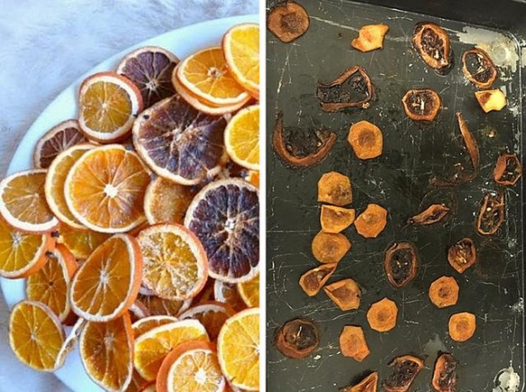 制作橙子干,左边是我想象中的样子,右边是惨痛的现实……
