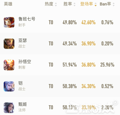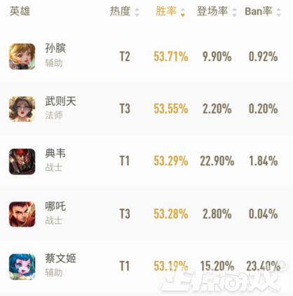 孙膑继续拿下胜率榜首 刺客太强成必Ban英雄