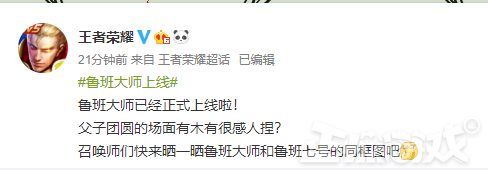 另外一个惊喜则是在28日的更新中,就连当时的王者荣耀官方微博也忍不住发微博称这次终于见到了鲁班父子,也就是鲁班大师和鲁班七号两位同框,官方还在微博中让玩家晒出两位英雄的对局同框图。
