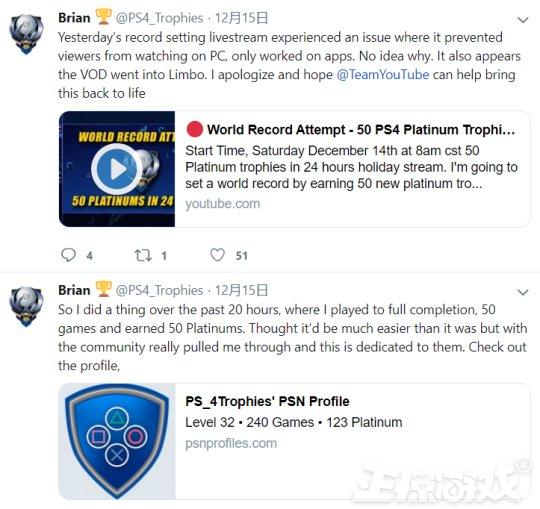 这名被称为“奖杯猎人”的玩家名为Brian,近日在国外视频网站直播的时候就给自己定下了这个“小目标”。目标之初是24小时结束挑战,结果只用了20小时就完成了。当时一共50000+人见证了记录的诞生,不过小弟发现直播的录播因为故障暂时无法观看。