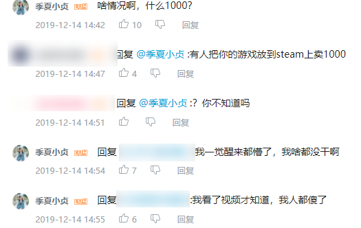 然而深究后发现,这个游戏根本不是这妹子上架到Steam上去的,而是被人盗用了。妹子本人只不过是随手做了个游戏给自己解压而已。发布B站之后,有人向她要了这个资源,然后就被盗用了,而妹子本人还在一脸懵逼的状态当中!
