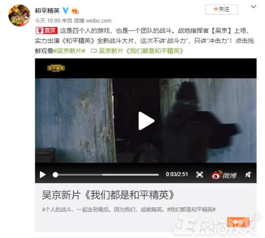 吴京从《和平精英》公测时就担任游戏的代言人了,称“战地指挥官”。不过吴京的主演还是让人有种战狼式的热血,但宣传片中的人物内心独白、队友团结协作还是让观众感受到了《和平精英》里的游戏氛围和精神。