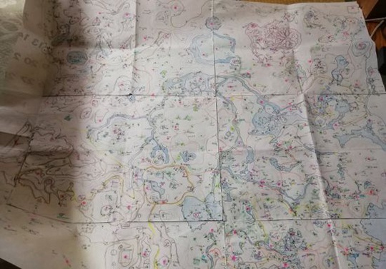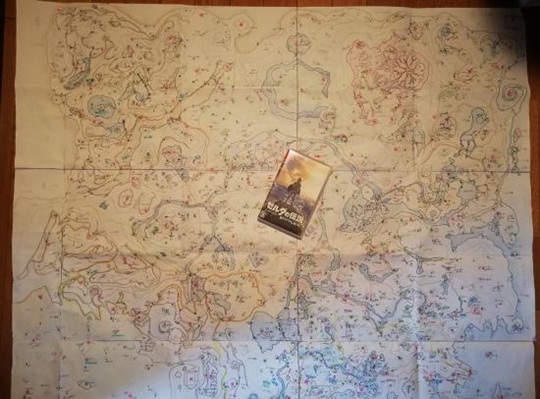 这张大作是他妈妈和他一边玩游戏一边手绘的作品。原因则非常简单:在《塞尔达传说:荒野之息》中,虽然地图可以让玩家自由放置标记物,但是却有数量上限,他妈妈为了帮助他进行游戏才决定绘制这张地图。