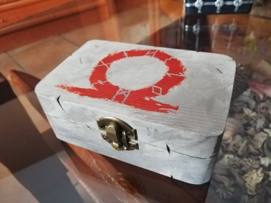 这是一个由女友亲手打造的《战神》主题宝箱,造型与细节都非常精致,箱子内还有两个矮人工匠的玩偶。