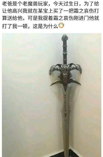 不过买礼物之前功课是要做足的,千万不要学这位小伙子这样,送他爸一把霜之哀伤……被暴打应该是轻的了!
