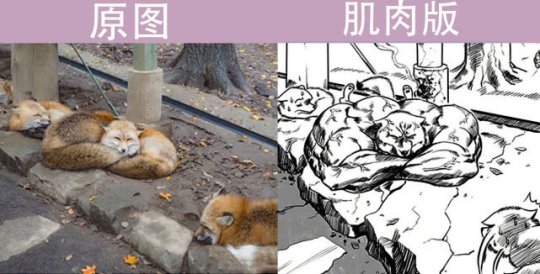 跟着一起火起来的,还有这一堆狐狸,照片上一只狐狸正靠在另一只狐狸身上睡觉,然而沙雕网友继续脑洞大开,直接画出一只秀出健壮到可以夹死人的肱二头肌的狐狸,毫无违和感,简直是万物皆可兄贵!