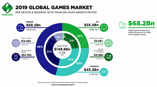 在如今的全球市场下,游戏行业版块分明:中国主导的手游,发育成熟的端游,还有未来无限可期的主机游戏。