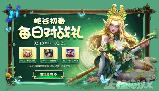 同时游戏还加了一个每日对战礼包,在2月18日到2月24日期间玩家参与对战就能活动一次开奖机会,开一体验包括王昭君-精灵公主、盘古-创世神祝等四款皮肤的一日限免卡。而且2月21日到23日每日登录还能获得荣耀播报。