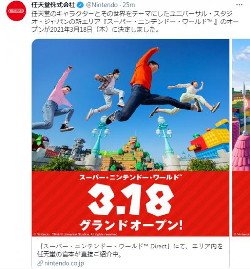 日本任天堂官方在推特宣布,日本环球影城的“超级任天堂世界”园区将于3月18日正式营业!