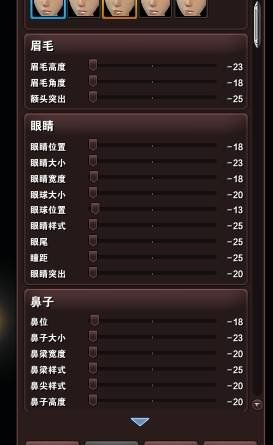 “眼睛样式”的数值条从左到右的变化很明显。越靠右侧。眼睛越像月牙~也就是上半圆,会像是在笑一样。特别注意!眉毛和眼睛要配套。也就是说。弯弯的眼睛要配上弯弯的眉。眼尾的高度和眼睛的样式要配套。当弯弯的眼睛遇到高眼尾的时候。。会像狐狸一样~~