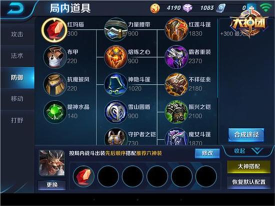 中期装备:中期装备的选择至关重要,它直接影响后期装备的方向以及成型速度。作为纯肉或者劣势情况下的牛魔中期装备建议选择先熔炼之心转红莲斗篷,增加前期的物理防御以及生命值,保证抗伤害能力,同时被动效果的每秒100点法术伤害,带来不少的输出,装备会随着人物升级而增加伤害,所以越早出越好。鞋子的话建议是影忍之足或者抵抗之靴,如果对手物理伤害高选择影忍之足,法术伤害高或者控制多就选择抵抗之靴减少法术伤害和控制时间,当然大优势情况下也可以选择冷静之靴,减少技能冷却时间,增加输出伤害。接下里优势的话选择暗影战斧,增加一定的输出,而劣势的话则是冰封之心增加自身的抗击打能力以及减CD来增加控制。