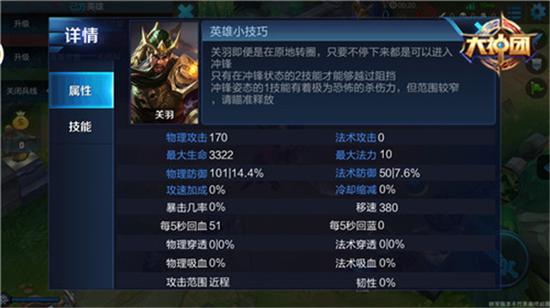 关 羽在游戏中的定位是坦克和战士,但他更偏向于冲锋型的战士,用于冲击和破坏对手的阵型,同时也有一定的吸收火力的效果,可以拉走一部分的仇恨,给队友一定 安全的输出环境。他拥有3322的基础生命值和不俗的生命值成长,在战士和坦克中也算比较高的存在,并且技能还有生命值加成,非常强力的组合搭配,基础物 理攻击170也不低,以及非常不错的物理防御,是一名合格的物理型坦克。