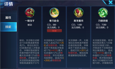 3、关羽进入冲锋状态下,普攻附带自身12%最大生命值的物理伤害,且攻击附带冲锋击退效果(可运用包抄方式建立奇效)