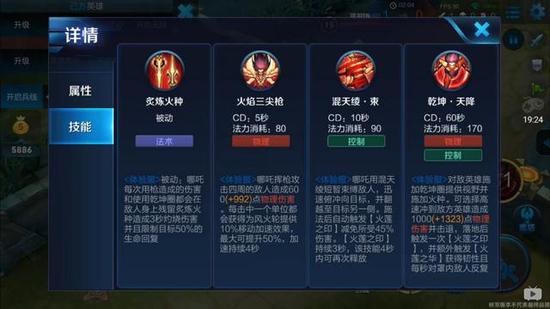 哪吒的被动是造成伤害的时候会对敌人造成一个dot效果,并且限制目标的回血。这个被动是程咬金、芈月、橘右京等拥有强力回复能力的英雄的克星。1技能在小兵堆或者团战中使用可以让哪吒的移动速度大幅提升,而且CD只有5秒,是他高机动性的来源。2技能提供追击+控制+减伤的效果,可以使用两次让敌人无处可逃,3技能提供全图视野+高速接近,类似DOTA中白牛的冲锋可以让你在地图任何一处支援队友or抓人。