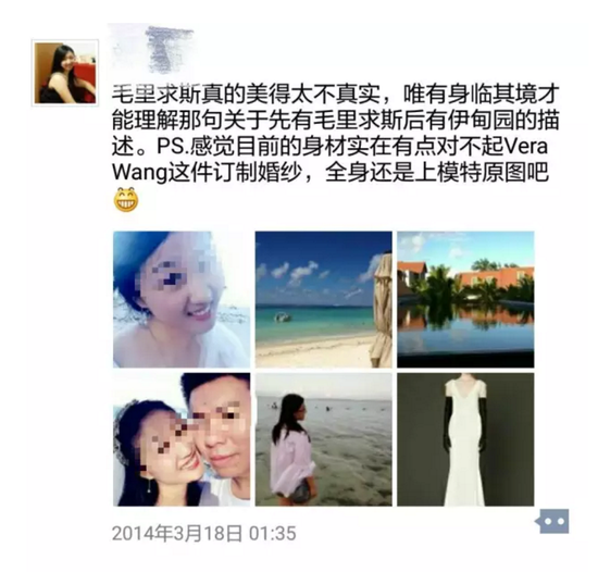 接着来说100w的事。你们拿这100w干了些啥?他们买了辆奔驰,去了毛里求斯度蜜月,结婚婚纱穿的是Vera Wang,现在钱花完了来要钱,结果没要来就昭告天下了!