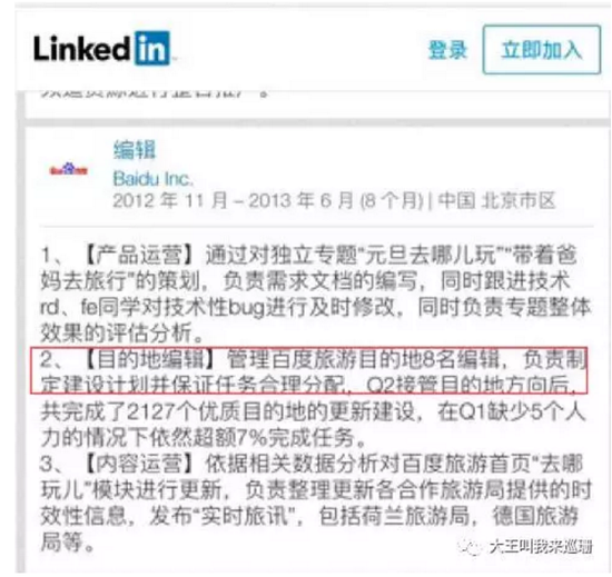 Emily 2012年来去哪儿,当年应届毕业生。之前在百度旅游实习过,然后简历里理所当然的有了[管理百度旅游目的地8名编辑],听着很牛逼吧?