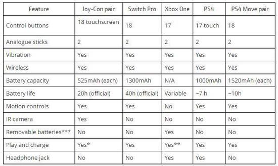 除了上面图表中呈现的差异之外,Switch的Joy-Con内置的反馈震动控制器拥有“高敏感”程度的精确震动,可以让我们体验到更微妙的动作。而这个特性在虚拟现实游戏中将起到重要的作用。