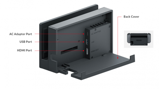 当连接底座的时候,可以通过电视输出游戏画面,同时Joy-Con手柄也通过与另外一个底座组合,变成普通的主机手柄;
