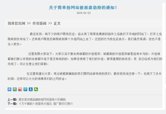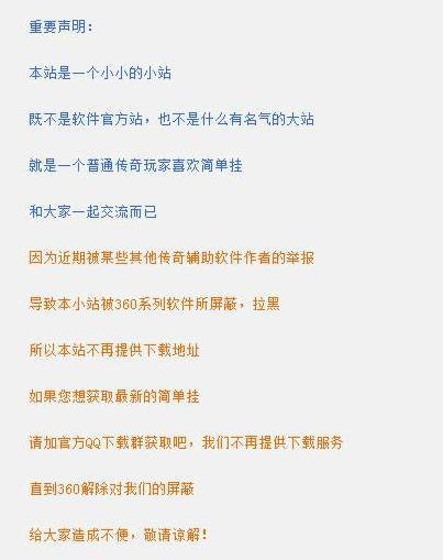 现在很多类似简单挂这样的外挂网站都被360封杀了,但他们会发布官方公告,借此机会博得玩家,这手段真的。。。