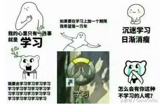 学习:在守望先锋中,玩家一般会把玩游戏的过程称之为“吸”,感觉自己是在嗑药一般,常常嘴里念叨着这就是最后一局,然后马上又开始了下一局游戏,再后来玩守望就慢慢演变变成了“学习”。