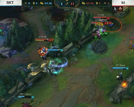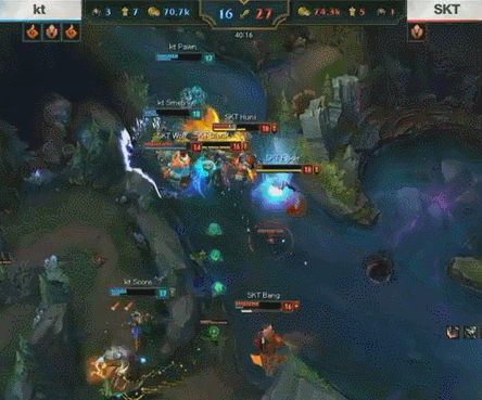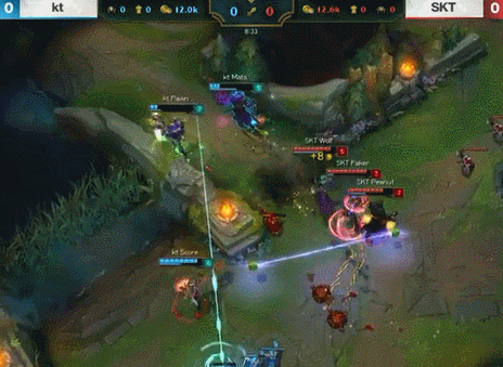 Faker的劫相信队友可以4打5,一直单带下路直到破高地。虽然SKT正面也折损多人,但是KT同样被击杀3人。这一波是Faker和SKT果断抉择的胜利。