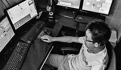 虽然打不了职业比赛,可小林对于游戏的热爱依然如故。2013年,一次偶然的机会,听老乡小陈聊起游戏代练这个职业,他一下子被吸引住了,缠着小陈问东问西,跟着小陈干起了代练。一开始也是兼职,可是渐渐地,他在代练上投入的精力越来越多,后来干脆辞掉了工作,干起了专职代练,和小陈只代练一个游戏不同,小陈同时为五个客户代练游戏角色。在小林的卧室中,有三台电脑,每天起床的第一件事,就是打开电脑登录游戏,一直忙到深夜。