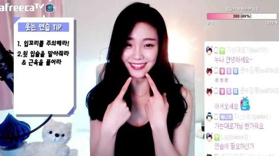 郑素拉从2017年2月起开始做网络主播,但是有别于其他主播,郑素拉面向的群体并非万千宅男,而是志愿成为空姐的韩国少女,直播内容也多是传授面试细节等。凭借幽默的谈吐、得体的妆容与专业知识,截至4月12日,观看郑素拉直播的人数累计已达70万4954人。图为郑素拉在展示标准微笑。