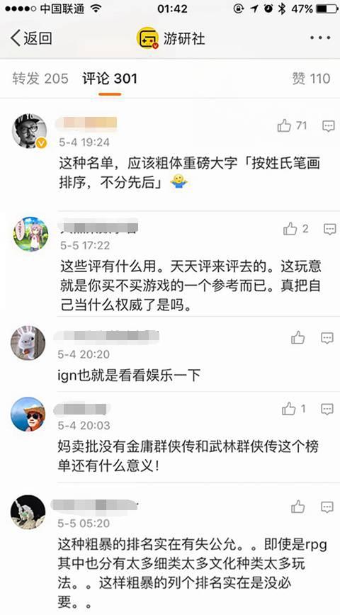 与两年前的那次大型排行榜一样,玩家们的反应依旧褒贬不一,在我们的微博评论下甚至看到了“IGN也就是看看娱乐一下”这样的玩家说法。