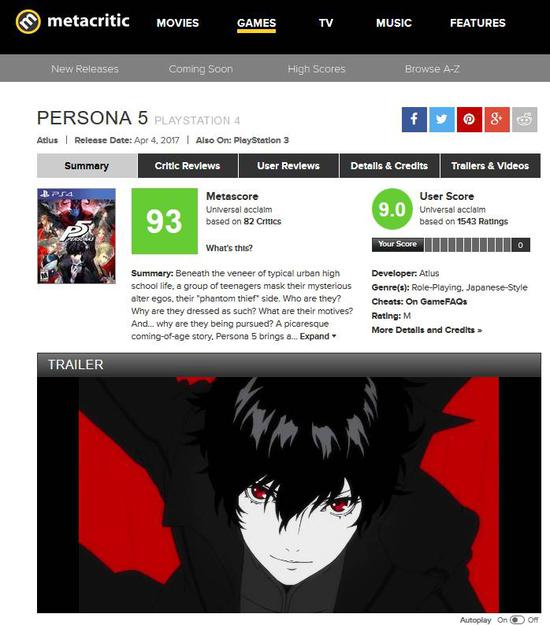 050。女神异闻录5 Persona 5 (PS4/PS3、2016.9.15)